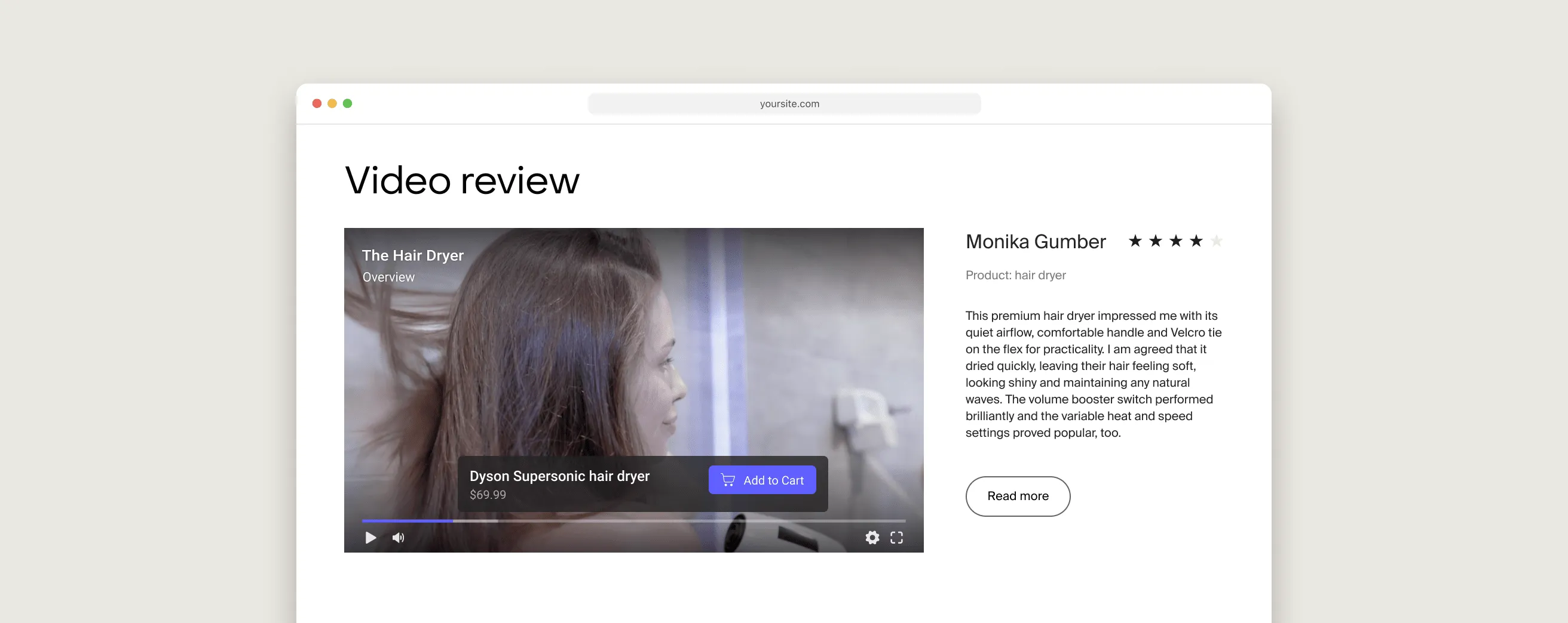 Читать длинные описания в карточке товара скучно. Дайте покупателям реальное представление, о том что продаете, добавив на сайт витрину, обзоры товаров и отзывы в видео формате.